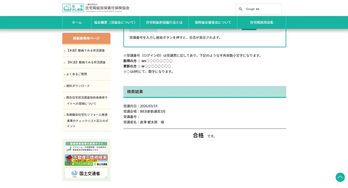 既存住宅状況調査技術者に合格しました