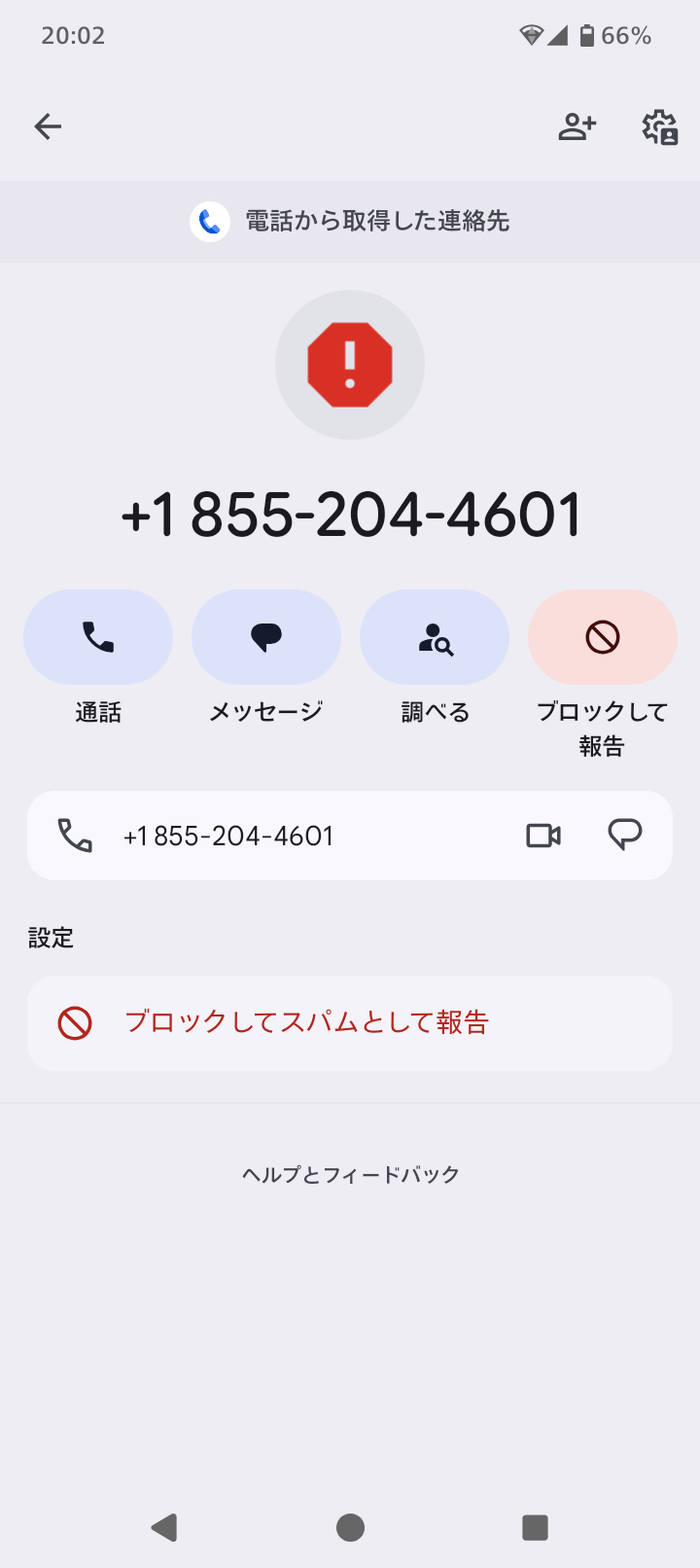 スマホに見慣れない番号から着信がありました。表示を見ると「+1 855…」。 …海外から、アメリカからですと…